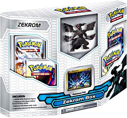 Pokemon TCG Zekrom Box includes The Deep Black Pokemon Zekrom as a fantastic figure 4 Pokemon TCG Black White series booster packs A cool Pokemon TCG Black White foil card of Zekrom Special code cards that unlock boosters for the Pokemon TCG Online Read More..