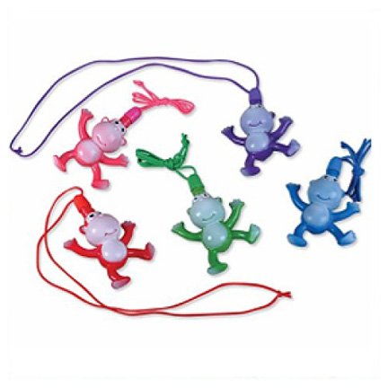 BR Go wild with these fantastic monkey shaped bubble bottles A great give away or prize for a variety of party themes and eventsBRBR 12 Monkey bubble necklaces per order Assorted colors 3 Can be worn as a necklace Bubble wand included Read More..