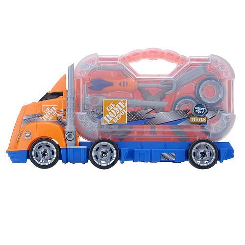Transport your tools to the next worksite with this Home Depot Hauling Tool Truck a Toys R Us exclusive This free-wheeling big rig features a removable toolbox that detaches when you push on the license plate Inside youll find 14 plastic hand tools designed to get the job done Dimensions 14 Read More..